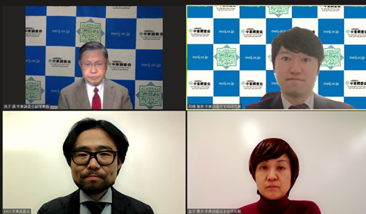 2024年2月22日(木)、主任研究員の高橋雅英と金子真夕による第29回中東情勢分析発表会(オンライン)を開催しました。